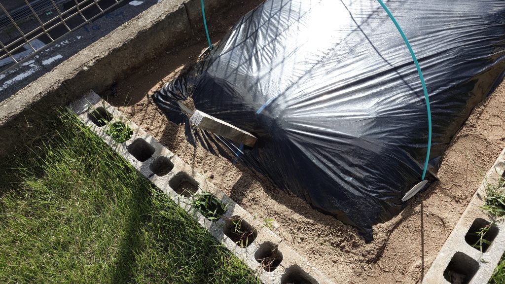 ①牛糞と化成肥料を入れて耕して、マルチを敷きました!