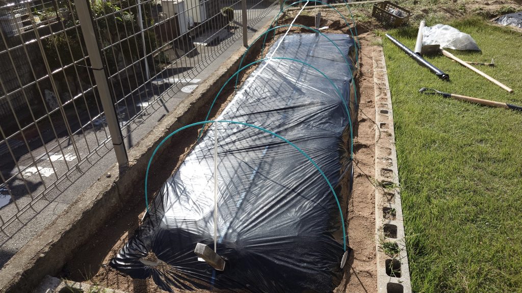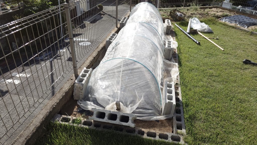 本来なら、土作り⇒定植⇒トンネルづくりになると思うのですが、私は子どもの昼寝の合間をぬって作業をやることが多いので、長くて2時間もできません。そのため、作業の順番とは違うようにもなっています!