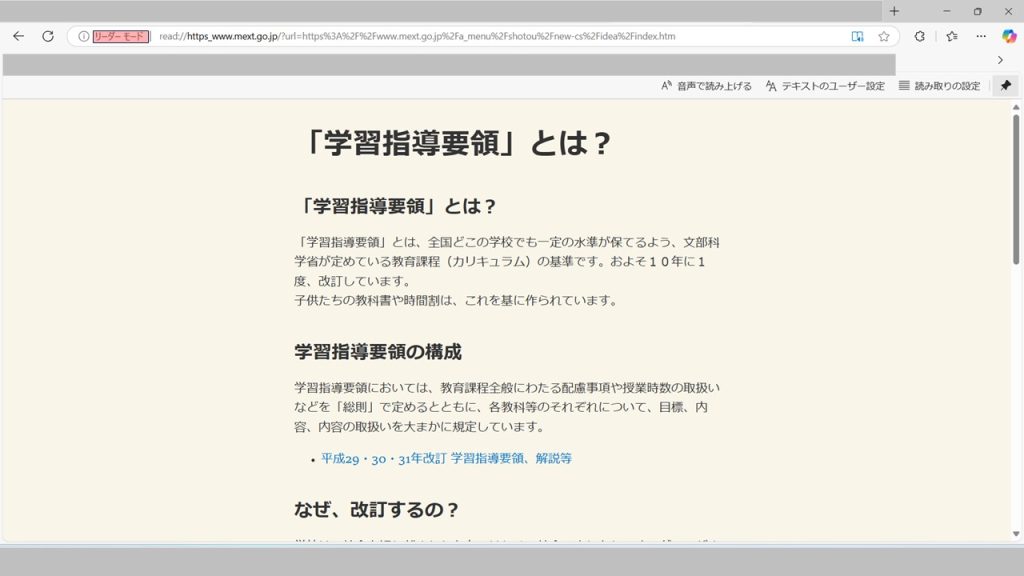 児童生徒が調べ学習をする際にも効果的だと考えられます。「リーダーモード」は、広告等も映らなくなるので、集中して文を読むことができます!