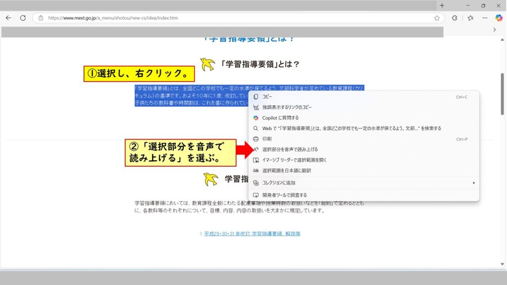 この方法も音声オプションで、速さや話し手の声も変えることができます!