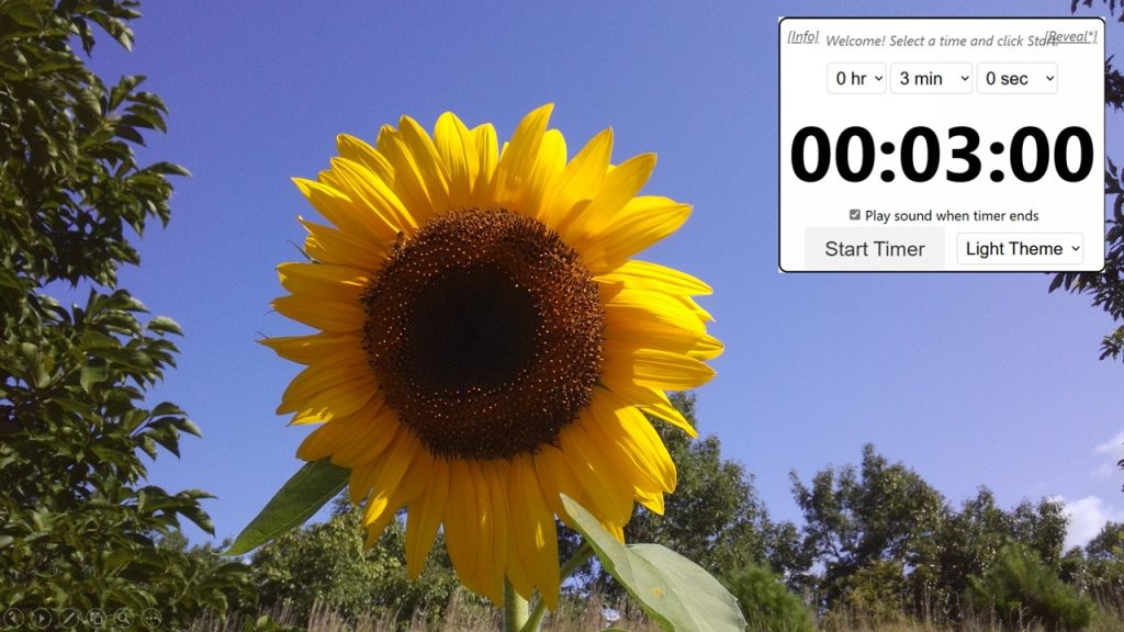 ※ 「Play sound when timer ends」にチェックを入れると、終了時に音が鳴ります。