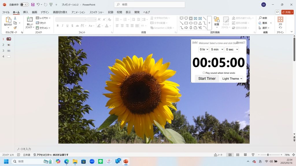 今回は、「Timer for PowerPoint」についての説明でした。そのほかにもアドインの中には、タイマーがあるので使いやすいものをさがしてみてください!